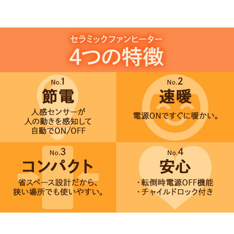 人の動きを検知して自動でオンオフ!人感センサー付きセラミックファンヒーター。