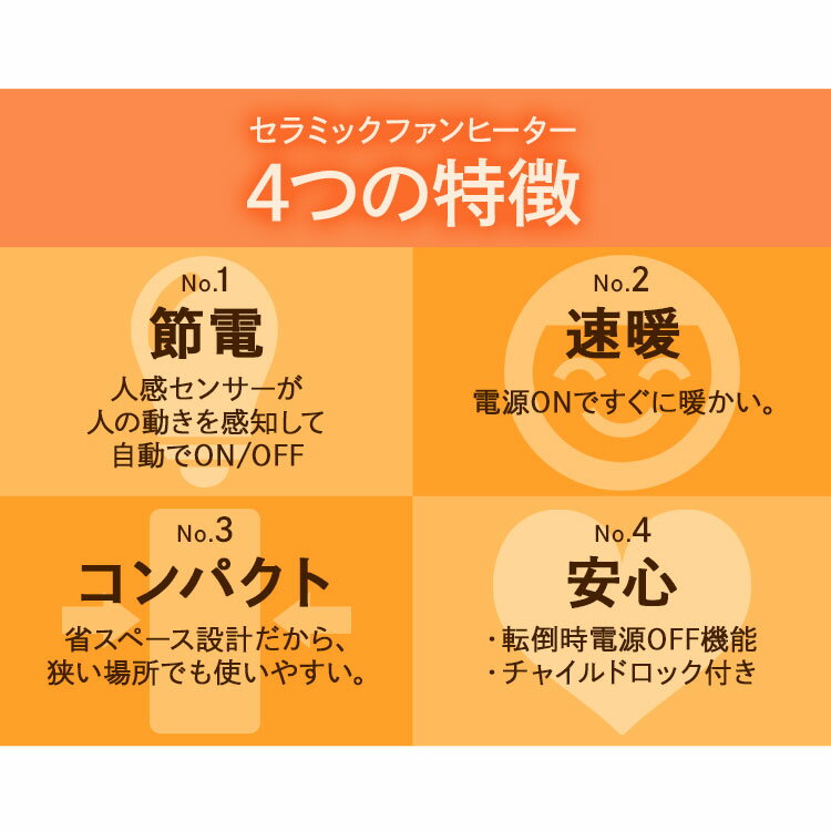 人の動きを検知して自動でオンオフ!人感センサー付きセラミックファンヒーター。
